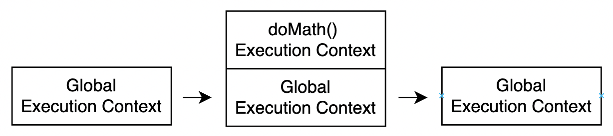 }For the code is not surrounded by any function clause and the doMath function is only declared not called, only global execution context is created. The following is the abstraction of its internals.