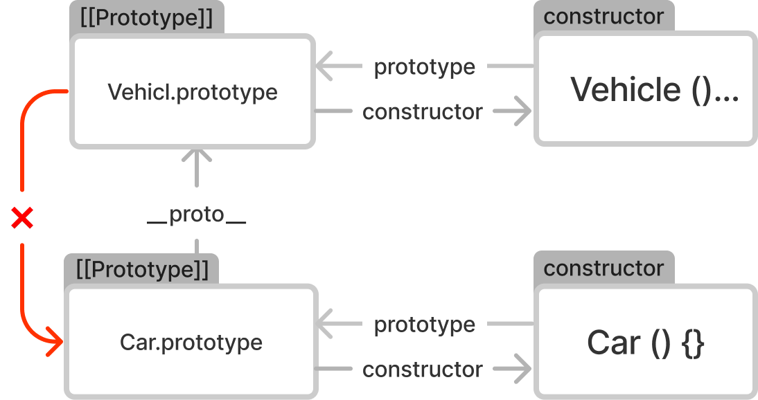 Object.getPrototypeOf(myCar) // f () { console.log('moving...) } In this case, prototype's move method was overriden.